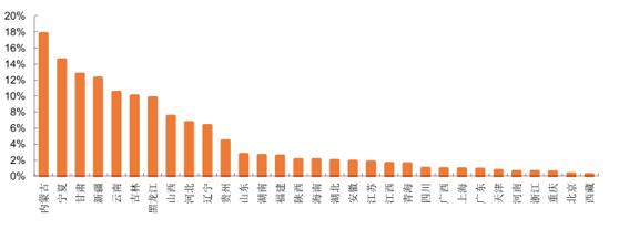 在嚴控高棄風地區(qū)新增裝機的情況下,近年新增裝機重心呈現(xiàn)向中東部和南方等負荷中心轉移的趨勢,目前來看,中東部和南方地區(qū)風電電量占全社會用電量的比重普遍偏低,近年収生嚴重棄風問題的風險較小。
