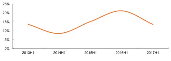 2017 年上半年現(xiàn)棄風率拐點
