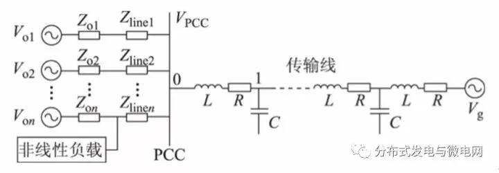 以上文獻(xiàn)都是基于傳輸線(xiàn)末端空載或帶載的情況,傳輸線(xiàn)末端對(duì)諧波表現(xiàn)為開(kāi)路或阻抗特性。而在基于VCM的微電網(wǎng)并網(wǎng)系統(tǒng)中,對(duì)于公共耦合點(diǎn)(Point of Common Coupling,PCC)的諧波電壓源而言,傳輸線(xiàn)末端為電網(wǎng)等效電壓源,其對(duì)諧波呈現(xiàn)短路特性,故此時(shí)以上文獻(xiàn)中有源濾波器的安裝位置和諧波抑制效果都將受到限制。