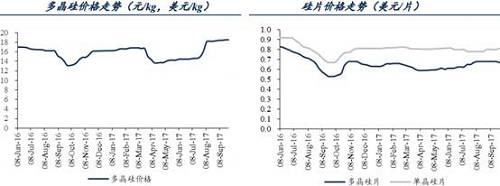 多晶硅價格維持高位,企業(yè)盈利可期。自2017年“630”以后,由于光伏行業(yè)發(fā)展遠(yuǎn)超預(yù)期,加上企業(yè)檢修、部分企業(yè)擴(kuò)產(chǎn)進(jìn)度拖后等原因,多晶硅處于供不應(yīng)求狀態(tài),多晶硅價格連續(xù)上漲并保持高位。