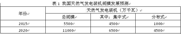 結(jié)合"十三五"期間我國電力發(fā)展供需分析以及未來我國天然氣發(fā)電在我國電力供應(yīng)中的地位,預(yù)測我國天然氣發(fā)電裝機規(guī)模發(fā)展,如表1所示。