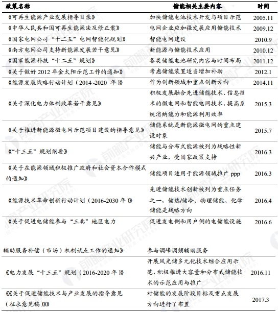 國內儲能相關主要政策