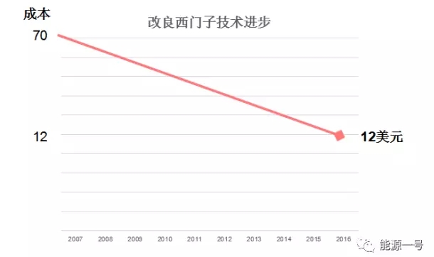 在節(jié)能環(huán)保方面,多晶硅生產(chǎn)過程中的綜合電耗,由2007年的350千瓦時降至2016年的60千瓦時;還原電耗也由180千瓦時降至42千瓦時左右。改良西門子法的多晶硅制造成本也從2007年的70美元/公斤跌至12美元/公斤,甚至10美元以下,下降幅度高達(dá)70%以上。