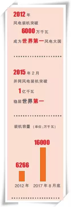 2017年6月底,我國風電累計并網(wǎng)容量達1.54億千瓦,上半年風電發(fā)電量已達1490億千瓦時,風電發(fā)電量約占全國發(fā)電量的5.0%。
