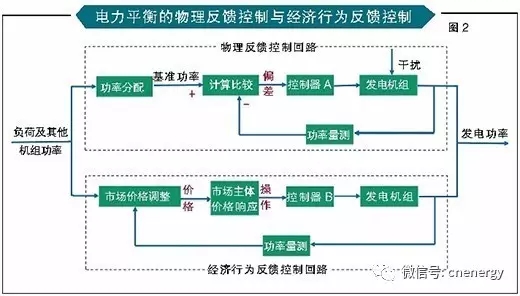 經(jīng)濟(jì)行為反饋控制回路主要是市場價(jià)格調(diào)整機(jī)制根據(jù)發(fā)電機(jī)組實(shí)際發(fā)電功率及其他信息獲得價(jià)格調(diào)整信號,市場主體基于價(jià)格信號作出行為響應(yīng),并通過物理控制器調(diào)整發(fā)電機(jī)組功率,由于此類反饋控制包括人的經(jīng)濟(jì)行為,具有不精確、不靈敏、反應(yīng)遲緩的特點(diǎn)。但在電力市場經(jīng)典理論中,兩類反饋控制長期被混為一談。