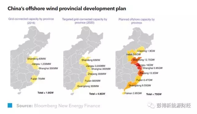 市場(chǎng)規(guī)模:2016 年,中國(guó)海上風(fēng)電累計(jì)裝機(jī)容量為1.6GW,為世界第三大海上風(fēng)電市場(chǎng),排在英國(guó)和德國(guó)之后。按照現(xiàn)有的海上風(fēng)電項(xiàng)目規(guī)劃,中國(guó)將超額完成原定5GW的2020年海上風(fēng)電累計(jì)并網(wǎng)目標(biāo)。其中,江蘇省還制定了3GW的2020 年省級(jí)目標(biāo)。