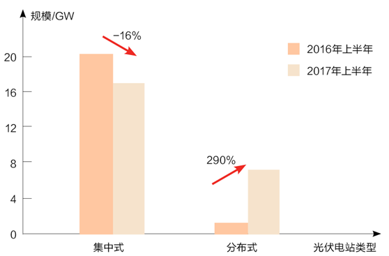能源局的數(shù)據(jù)顯示,上半年光伏發(fā)電市場規(guī)??焖贁U(kuò)大,新增光伏發(fā)電裝機(jī)2440萬千瓦,其中,光伏電站1729萬千瓦,同比減少16%;分布式光伏711萬千瓦,同比增長2.9倍。從數(shù)據(jù)來看,最為亮眼的無疑是分布式光伏的近三倍增長,在集中式地面電站逐漸收縮的時(shí)候,分布式光伏已成為另一個(gè)爆發(fā)點(diǎn)。