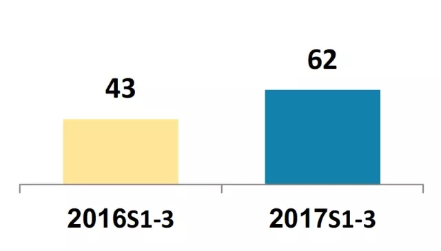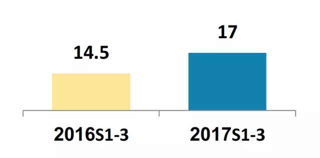 前三季度多晶硅產(chǎn)量約為17萬(wàn)噸,同比增長(zhǎng)17%;