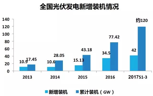 ? 1-9月累計(jì)裝機(jī)量約120GW,其中光伏電站超過(guò)95GW,分布式光伏超過(guò)25GW。