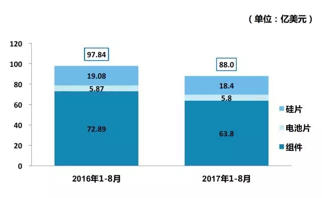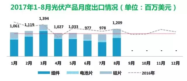 對(duì)外貿(mào)易:2017年1-8月中國(guó)光伏產(chǎn)品進(jìn)出口總體情況