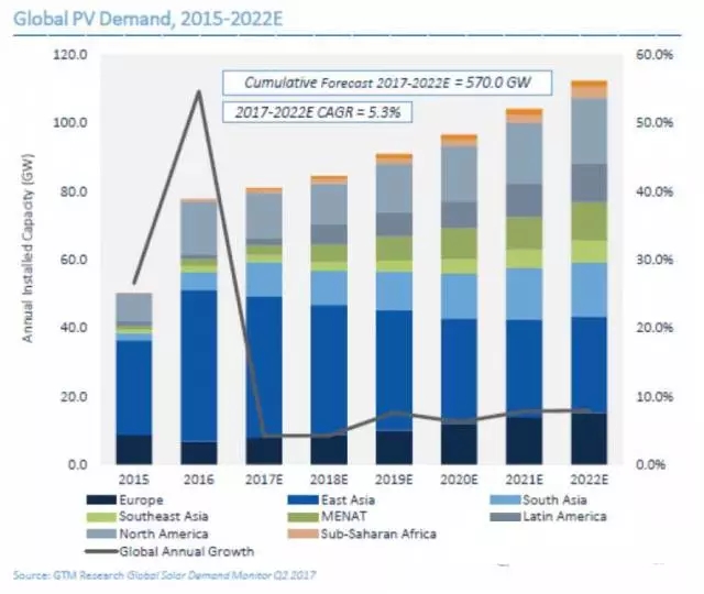 ——GTM:2017年全球光伏裝機(jī)超過(guò)80GW,中國(guó)、美國(guó)、印度和日本占比超過(guò)73%;