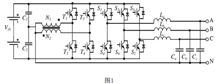 但是,這種拓?fù)浣Y(jié)構(gòu)也有它本身的缺點,加入工頻變壓器自然增加了硬件的成本、重量和體積。另外該電路拓?fù)浣Y(jié)構(gòu)并沒有實現(xiàn)三相電路的完全解耦,無法從根本上解決三相負(fù)載不平衡導(dǎo)致三相輸出不對稱的問題。因此,在一些容易出現(xiàn)不平衡負(fù)載的場合限制了其應(yīng)用。