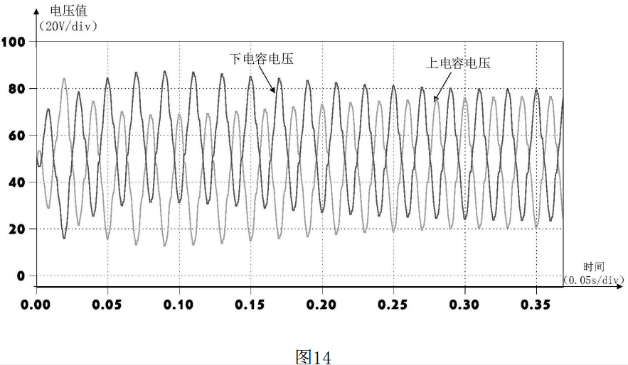 圖14為傳統(tǒng)的逆變器上下電容電壓波形圖;