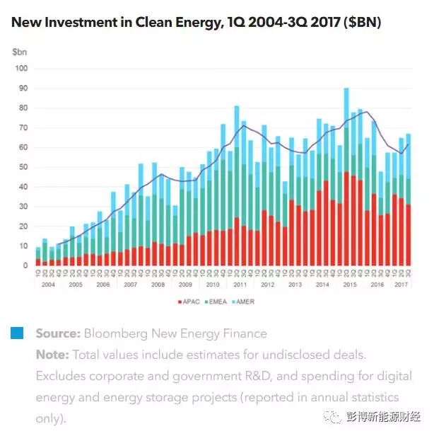 2017年第三季度全球清潔能源投資總額