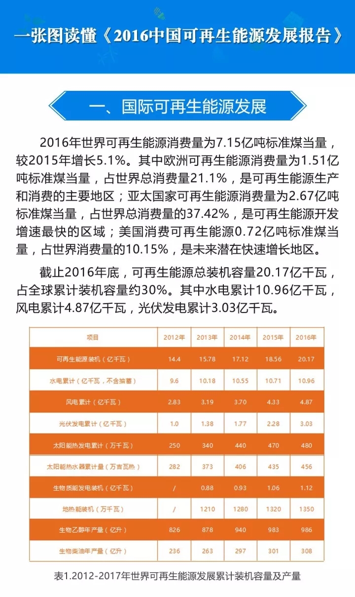 中國儲能網(wǎng)訊:10月17日,水電水利規(guī)劃設(shè)計總院發(fā)布了《2016中國可再生能源發(fā)展報告》(以下簡稱《報告》)?!秷蟾妗穼χ袊?、風(fēng)電、太陽能和生物質(zhì)能的資源儲量和分布、“十二五”及2016年發(fā)展情況、行業(yè)近期發(fā)展特點、政策和相關(guān)研究熱點等方面進(jìn)行了梳理和分析,對2017年及2020年“十三五”中后期中國可再生能源發(fā)展前景進(jìn)行了展望。