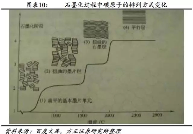 石墨化是人造石墨制備過(guò)程中另一個(gè)關(guān)鍵環(huán)節(jié),這個(gè)環(huán)節(jié)的作用 是將碳原子由熱力學(xué)上不穩(wěn)定的“二維無(wú)序重疊”排列轉(zhuǎn)變?yōu)椤叭S有序重疊”排列。