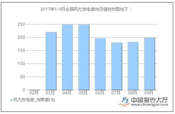 2017年9月全國風(fēng)力發(fā)電量為200%,累計值為1914%,同比增長36.8%,累計增長21%。