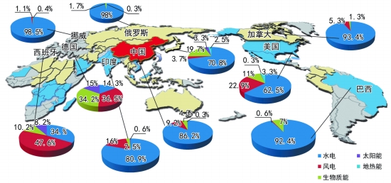 截至2011年年底,全球可再生能源發(fā)電排名前十位的國家分別是中國、美國、巴西、加拿大、俄羅斯、印度、德國、挪威、日本、西班牙。(數(shù)據(jù)來源:中國可再生能源行業(yè)協(xié)會官方網(wǎng)站)