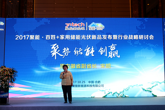 研討會上,原安徽省副省長宋明向參會嘉賓們介紹了當下國家對光伏產(chǎn)業(yè)的扶持。與此同時,作為聚能新能源對分布式光伏系統(tǒng)與儲能系統(tǒng)進行完美融合的新成果,聚能“百姓+”家用儲能光伏發(fā)電系統(tǒng)正式發(fā)布,打破傳統(tǒng)戶用光伏系統(tǒng)模式,創(chuàng)造新的儲能光伏品牌理念。