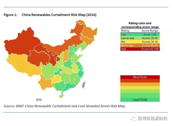 5. 中國(guó)仍將在棄風(fēng)棄光高風(fēng)險(xiǎn)地區(qū)新增超過(guò)50GW的風(fēng)電光伏裝機(jī)容量:根據(jù)我們的棄風(fēng)棄光風(fēng)險(xiǎn)地圖,超過(guò)三分之一的省份在棄電高風(fēng)險(xiǎn)區(qū)域。然而,我們估計(jì)在能源局十三五期間的預(yù)核準(zhǔn)項(xiàng)目清單中仍有30GW的風(fēng)能項(xiàng)目及24GW 的光伏項(xiàng)目位于這些高風(fēng)險(xiǎn)地區(qū)。