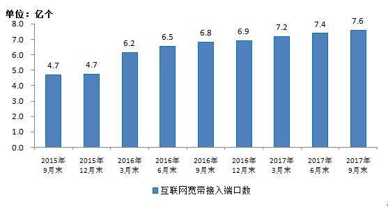 2015-2017年9月互聯(lián)網(wǎng)寬帶接入端口數(shù)發(fā)展情況