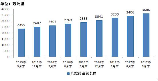2015-2017年9月光纜線(xiàn)路總長(zhǎng)度發(fā)展情況