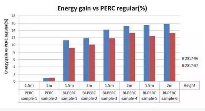 結(jié)果表明:雙面PERC組件發(fā)電量高出8%-16%。