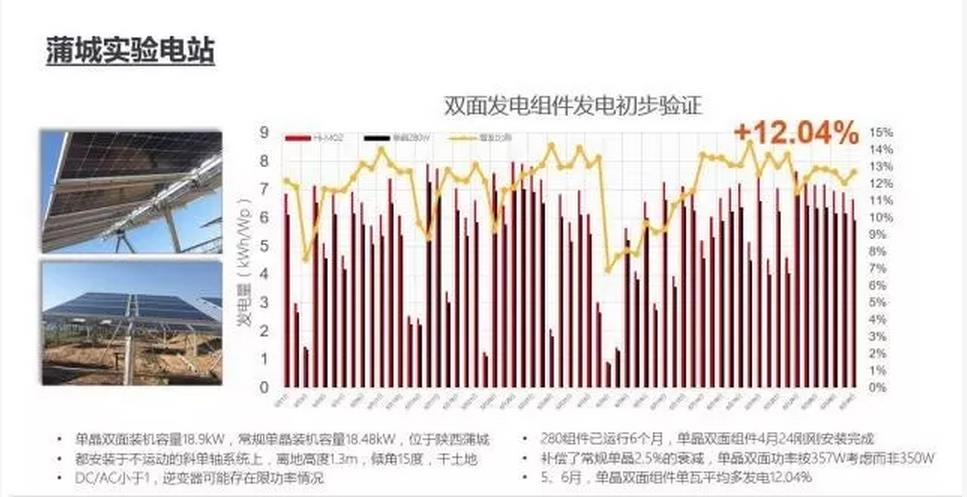 試驗(yàn)證明:5、6月,單晶雙面組件單瓦平均多發(fā)電12.04%。