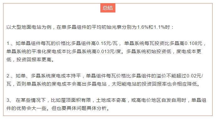 多晶系統(tǒng)初始投資低,度電成本更低,投資回報率更高。