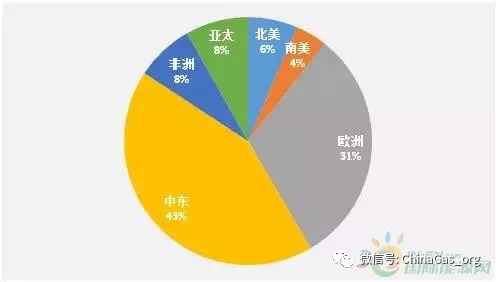 圖1. 2014年世界各地區(qū)天然氣探明儲(chǔ)量分布(單位:萬(wàn)億立方米)