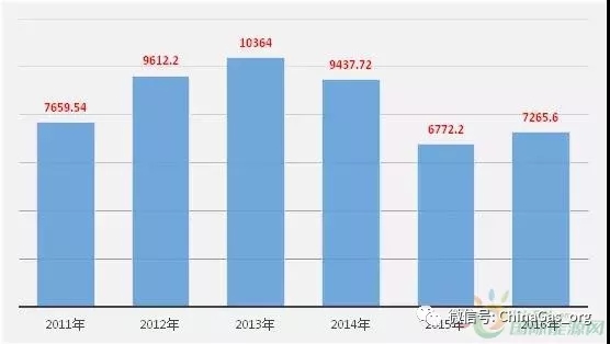 圖3. 2011年-2016年我國(guó)天然氣新增探明地質(zhì)儲(chǔ)量(單位:億立方米)