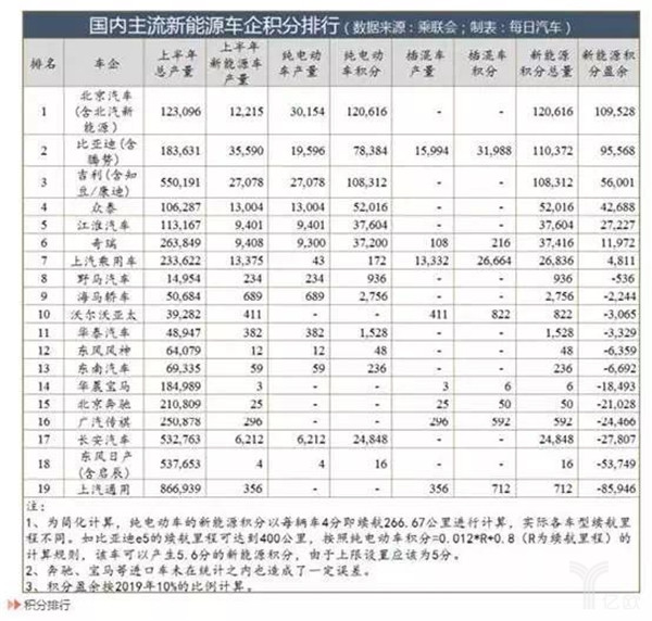 今日汽車大致統(tǒng)計了國內主流新能源車企積分排行。