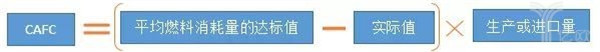 其中,CAFC積分為該企業(yè)平均燃料消耗量的達標值和實際值之間的差額,與其乘用車生產(chǎn)量或者進口量的乘積,實際值低于達標值產(chǎn)生正積分,高于達標值產(chǎn)生負積分。