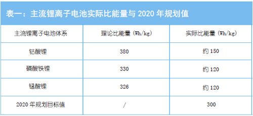 根據(jù)國(guó)務(wù)院頒布的《節(jié)能與新能源汽車產(chǎn)業(yè)發(fā)展規(guī)劃(2012-2020 年)》中提及的目標(biāo),至2015年動(dòng)力電池模塊的能量密度達(dá)到150Wh/kg(折算成單體電池,其能量密度大約需要達(dá)到170-190Wh/kg),至2020 年動(dòng)力電池模塊的能量密度達(dá)到300Wh/kg(對(duì)應(yīng)的單體電池能量密度至少達(dá)到330Wh/kg 以上)。