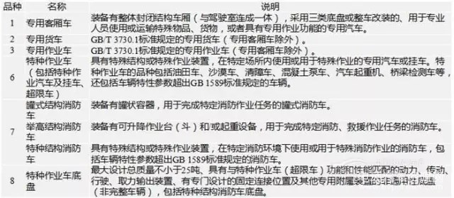 1、專用車推薦車型目錄分析