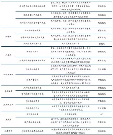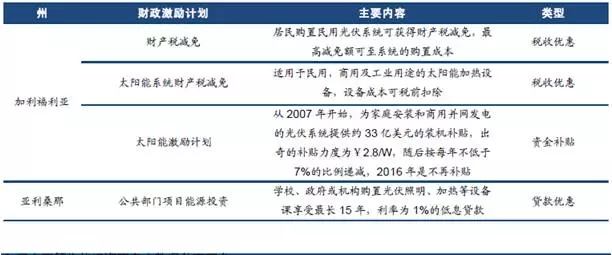 美國光伏行業(yè)政策主要有兩大類:聯邦財政激勵計劃和法律法規(guī)、標準、約束性指標等管理類政策。其中,聯邦財政激勵計劃并不局限于補貼,而是以稅收優(yōu)惠為主,并對稅收、貸款、擔保等各項投融資流程均有惠及,旨提高光伏行業(yè)的投資驅動力。