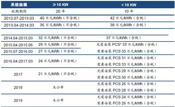 日本市場規(guī)模成長迅速的主要原因是FiT補貼政策,近年來FiT補貼的持續(xù)減少。日本經濟產業(yè)省(METI)宣布《可再生能源特別措施法案》的法律修正案已通過內閣會議,于2017年4月1日起開始實施。