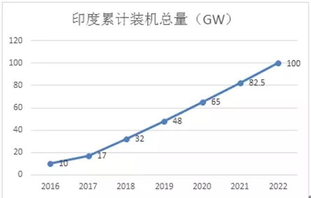 整體而言,印度政府推出了宏大國家太陽能計劃——至2022年,總裝機容量將達到100GW,該計劃被認為是推動印度光伏行業(yè)發(fā)展的主要動力。