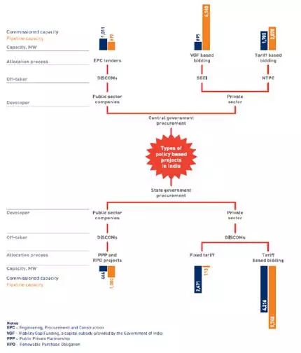 印度政府政策包括可再生能源購買義務(RPO)、各類融資激勵、穆迪政府推出的UDAY計劃、太陽能公園等。