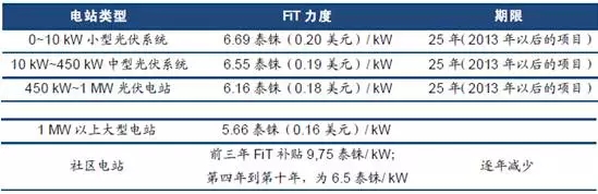 英國:2015年4月1日后,裝機量大于5MW的地面安裝光伏系統(tǒng)將不再有資格申請可再生能源義務證書(ROC)機制下的補貼;而2016年大幅調降64%的FiT補貼電價,可再生能源義務法案(RO)于2016年3月終止。相對而言,分布式光伏補貼減少力度更小,但減少趨勢不改。根據柏林智庫Thema1發(fā)布并獲得歐洲企業(yè)聯盟支持的一份報告《在即:無補貼英國太陽能》(InSight:Unsubsidised UK Solar),到2020年結束時,英國無補貼太陽能有望蓬勃發(fā)展。