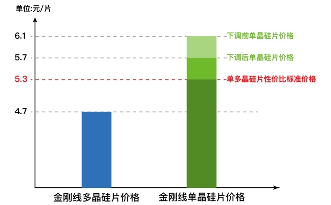 隨著多晶金剛線切割改造放量,多晶硅片也有降價空間,或逼迫單晶為搶市場同步再降。分析人士稱,此次降價或許只是開始,到年底12月份,單晶硅片很有可能出現(xiàn)5.4、5.0,甚至4.5元/片以下的價位。