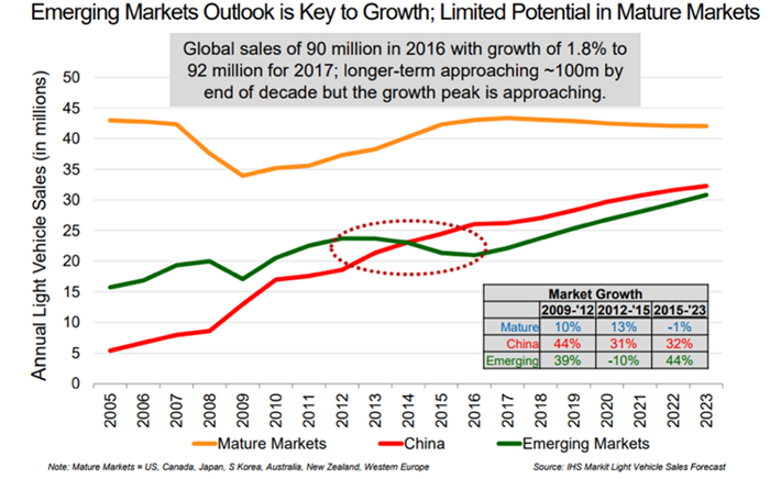 然而,進(jìn)一步來(lái)看,特斯拉對(duì)中國(guó)的需要可能要大于中國(guó)對(duì)特斯拉的需要。根據(jù)IHS Markit發(fā)布的輕型車銷量預(yù)測(cè)圖表顯示,中國(guó)對(duì)全球車企來(lái)說(shuō)都是“必爭(zhēng)之地”。中國(guó)于2009年超過(guò)美國(guó)一舉成為全球第一大汽車市場(chǎng)。西方國(guó)家市場(chǎng)的汽車銷量預(yù)測(cè)則呈下降趨勢(shì),而新興市場(chǎng)則將引領(lǐng)全球汽車市場(chǎng)增長(zhǎng)。
