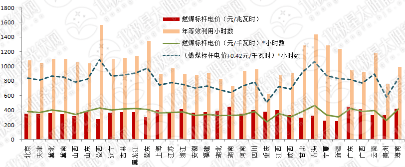 各地區(qū)分布式光伏發(fā)電經(jīng)濟(jì)性(全額上網(wǎng)模式,按照70%的經(jīng)營(yíng)期系統(tǒng)效率)