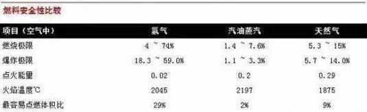 燃料電池由于原料氫氣易燃易爆,市場普遍擔心其安全性問題。但如下表的數(shù)據(jù):