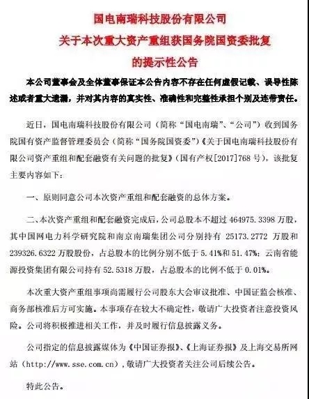 國(guó)電南瑞披露重組方案今復(fù)牌