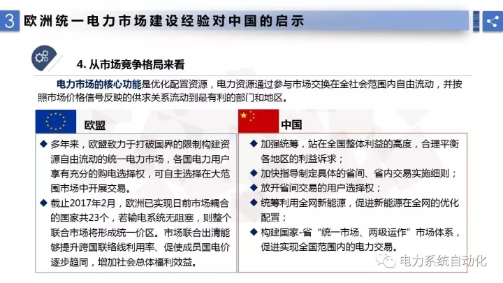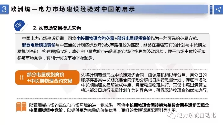 中國儲(chǔ)能網(wǎng)訊:2017年10月29日,“紫金論電—我國電力市場建設(shè)模式、路徑及實(shí)踐研討會(huì)”在南京召開,北京電力交易中心市場部主任龐博在會(huì)上作了題為“歐洲統(tǒng)一電力市場建設(shè)及對中國電力市場模式的啟示”的主旨報(bào)告。報(bào)告全面介紹了歐洲統(tǒng)一電力市場建設(shè)背景及最新進(jìn)展,提出了在市場架構(gòu)、交易模式、交易品種以及市場競爭格局等方面對中國電力市場模式的啟示。小編征得專家同意,在此分享報(bào)告PPT,歡迎品讀。