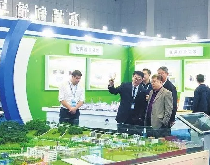 向參觀者介紹項(xiàng)目情況。