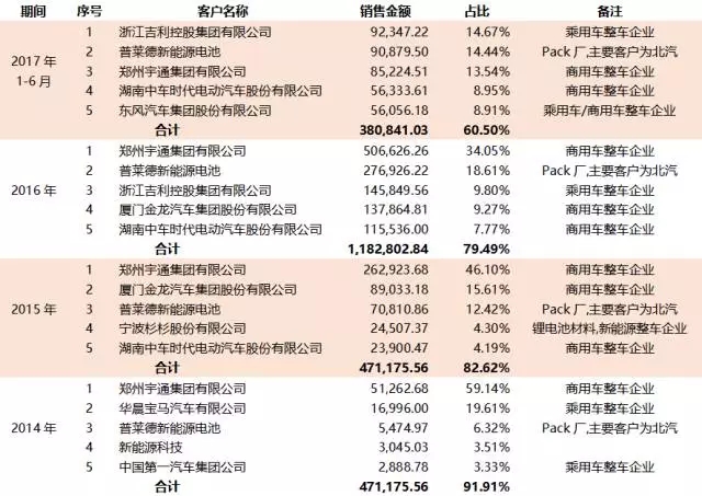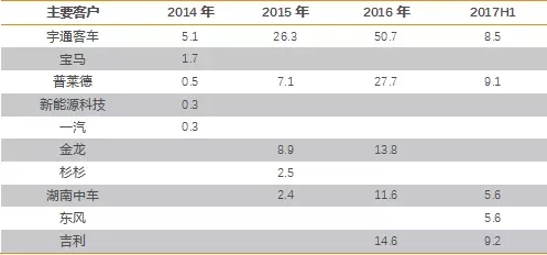 圖17:2014年~2017年1~6月寧德時代前五大客戶(單位:萬元)