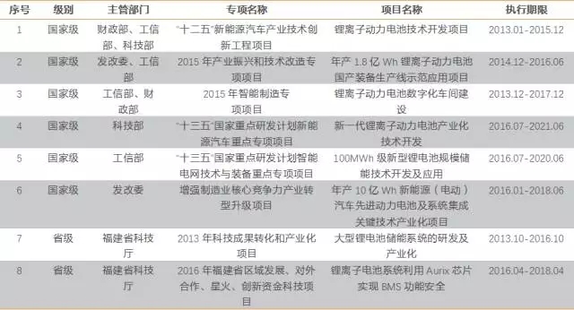 根據(jù)對寧德時代承擔的重大研發(fā)項目統(tǒng)計,可以看到公司承擔了工信部、科技部、發(fā)改委、財政部等四部委的多項重大動力電池技術(shù)課題,2020年350wh/kg的鋰電系統(tǒng)能量密度目標將依靠以CATL為首的龍頭企業(yè)來實現(xiàn)。