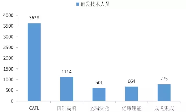 圖17:主要鋰電公司研發(fā)技術(shù)人員數(shù)量(2016年底)